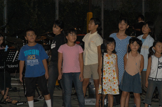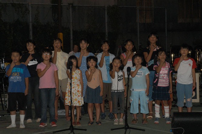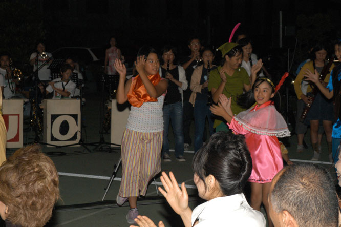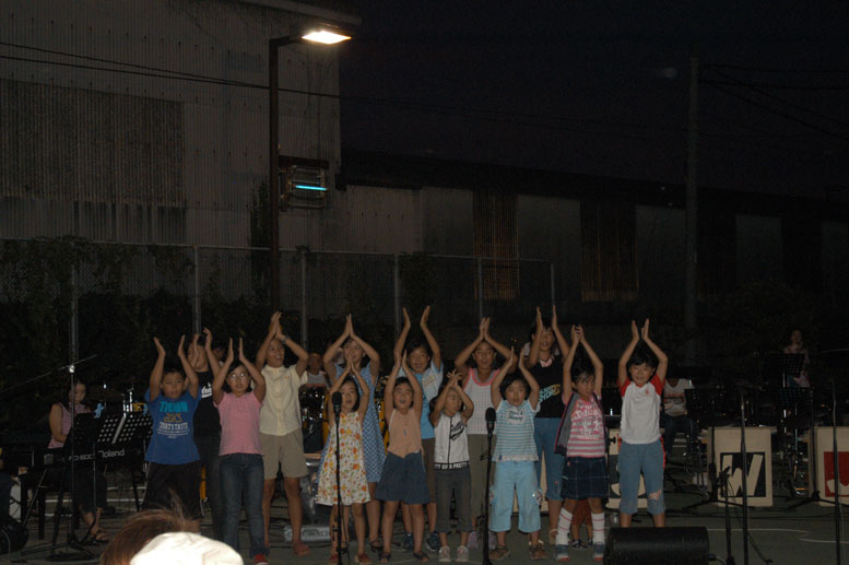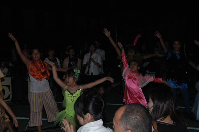 「宝島夢伝説2004」の子供達と、藤村先生のリハーサル