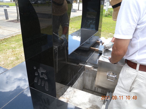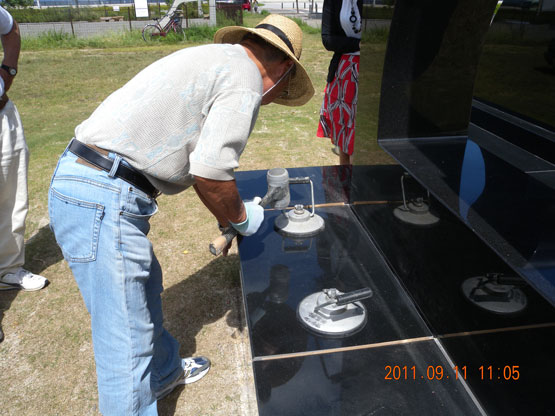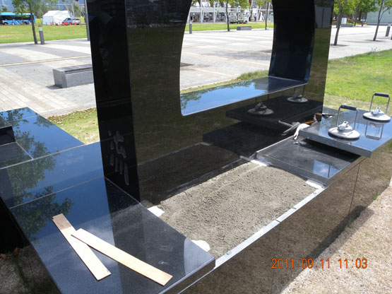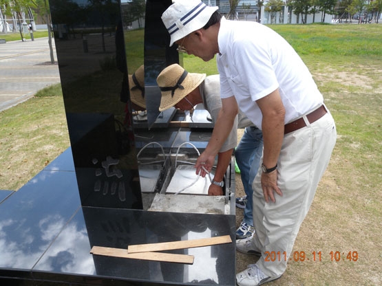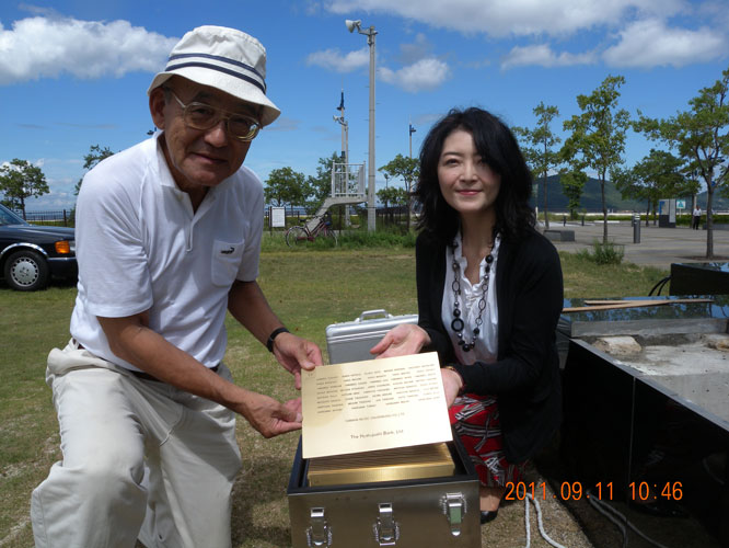 彫刻「瀬戸の夕陽」銘板封入